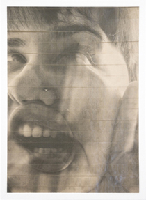 ⎯ Es esta una exposición cargada de sensaciones, capaz de hacernos llegar un poco de lo que sienten los retratados a través de grandes fotografías recubiertas de cinta de embalar, insistiendo en la idea de captura; es una muestra que pone de manifiesto una reflexión en torno al miedo, el temor y el subconsciente.